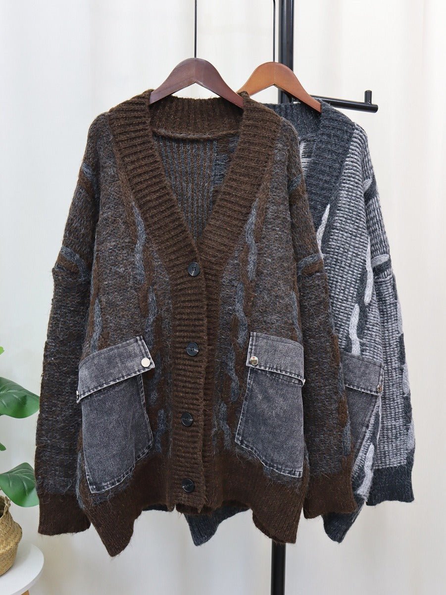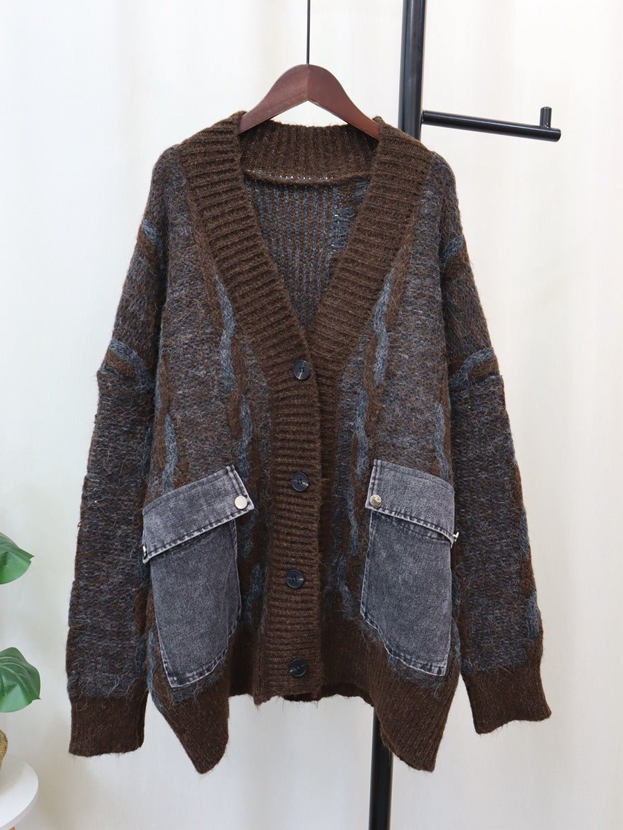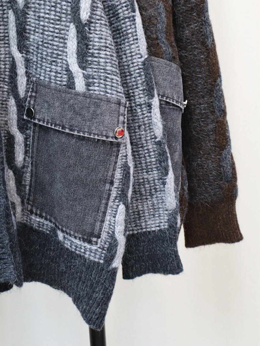Spliced Denim Pocket Knit Cardigan