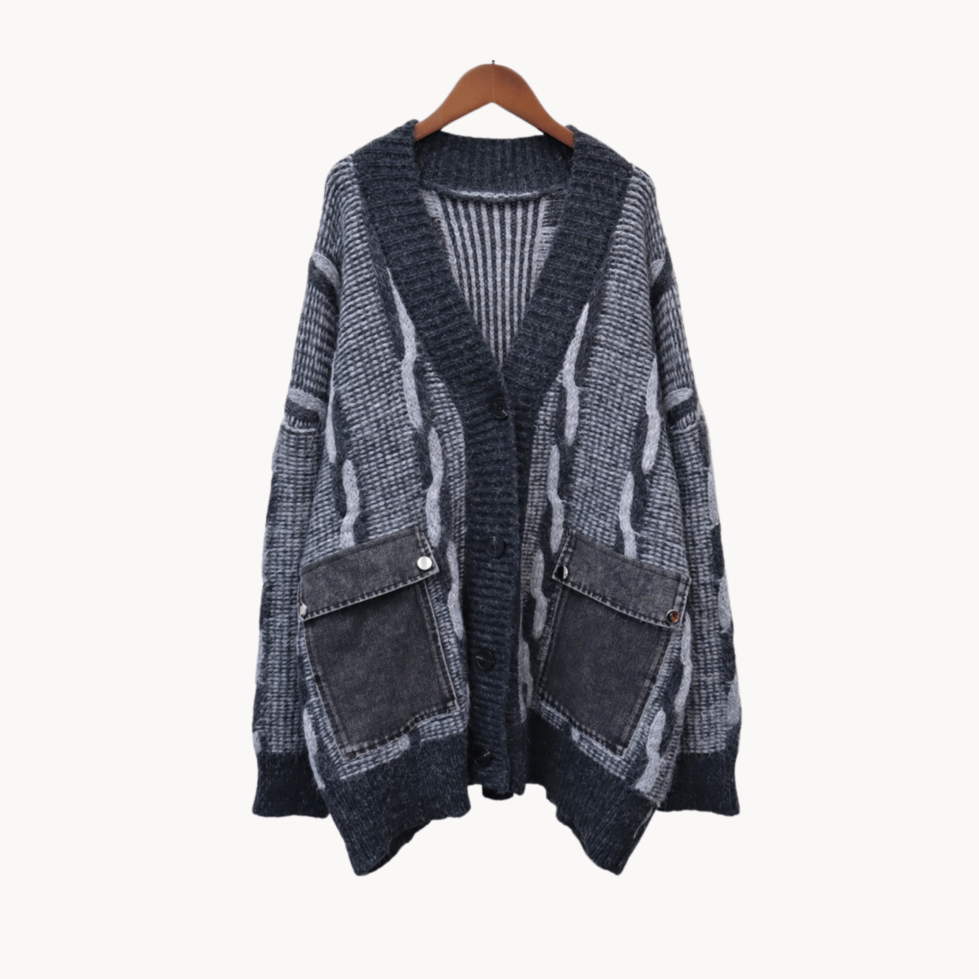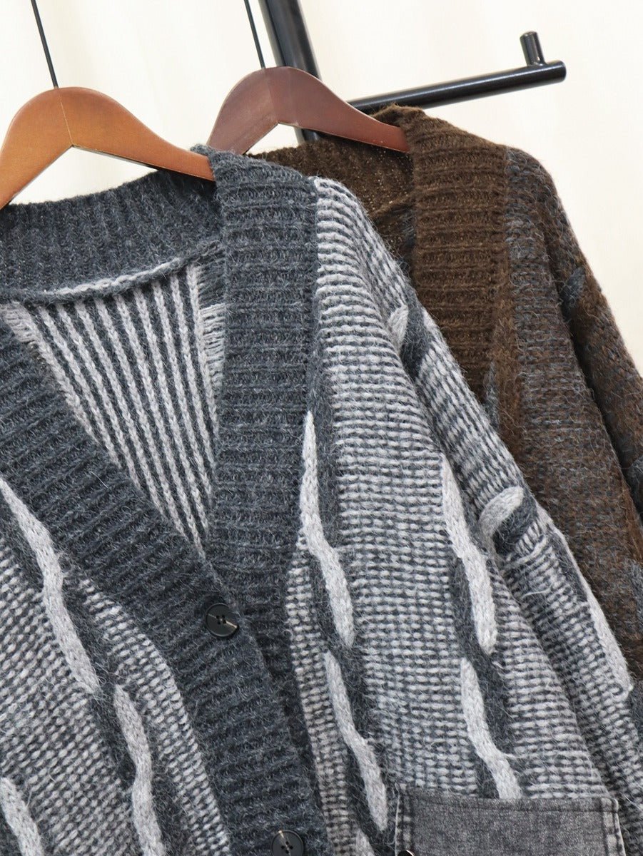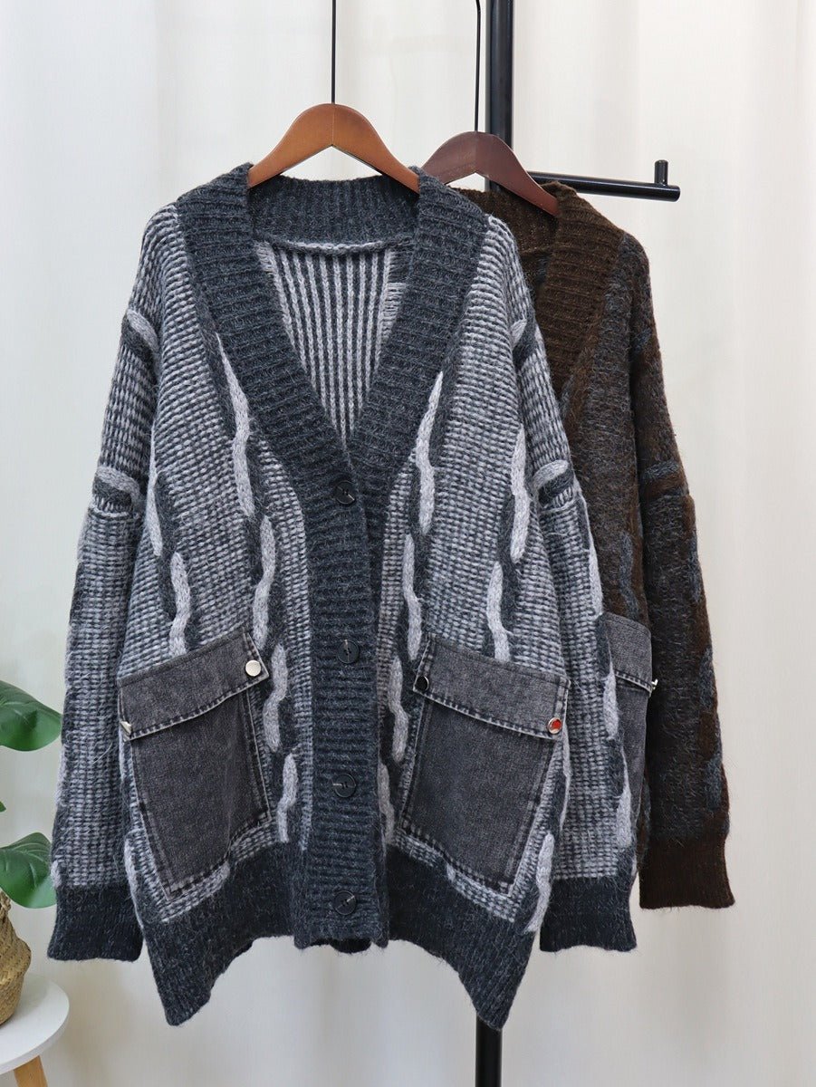 Spliced Denim Pocket Knit Cardigan