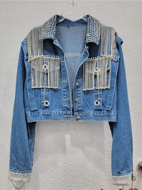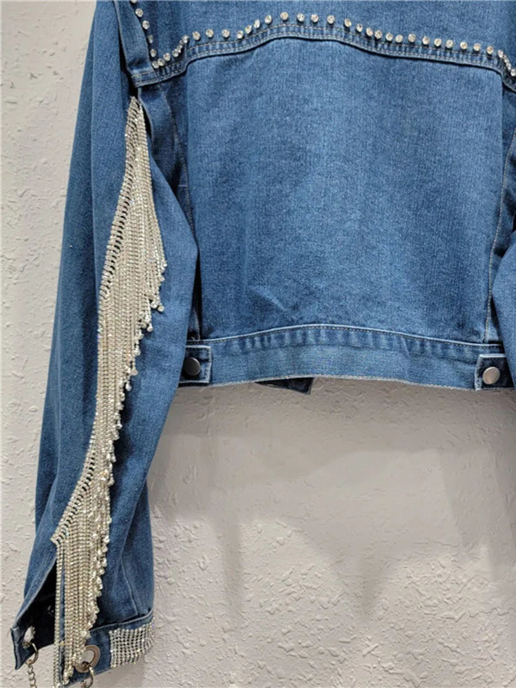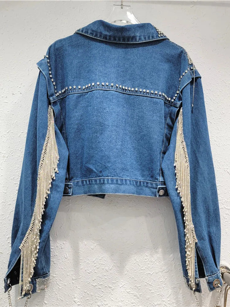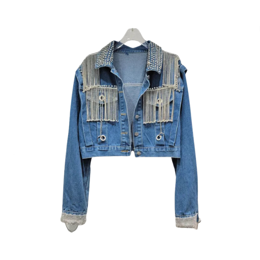 The unique spliced design and tassel detailing add a touch of elegance to this classic staple. With long sleeves for extra coverage. this jacket will keep you stylish and comfortable all day long.