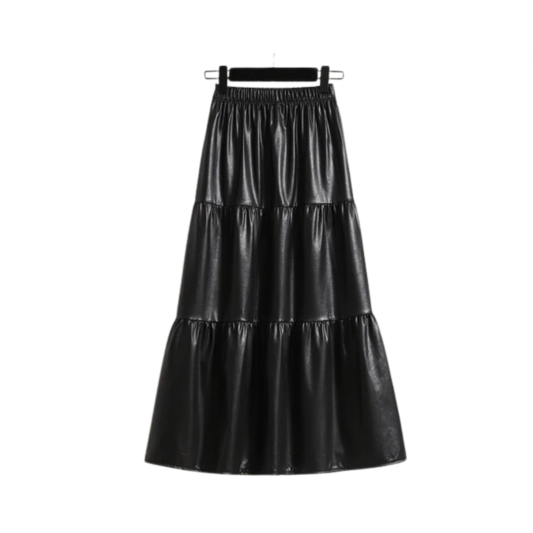 Expertly crafted from soft leather. this pleated skirt features an elastic waistband for a comfortable and flattering fit. The unique splicing design adds a touch of edginess to any outfit. making it a versatile and stylish addition to your wardrobe.