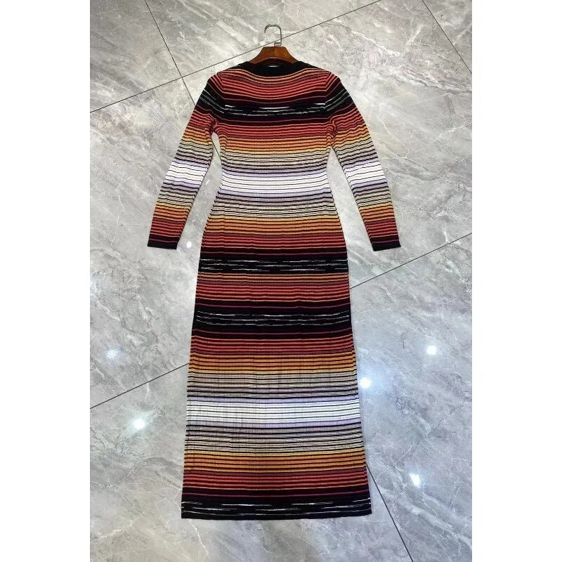 Square Neckline Bodycon Striped Dress