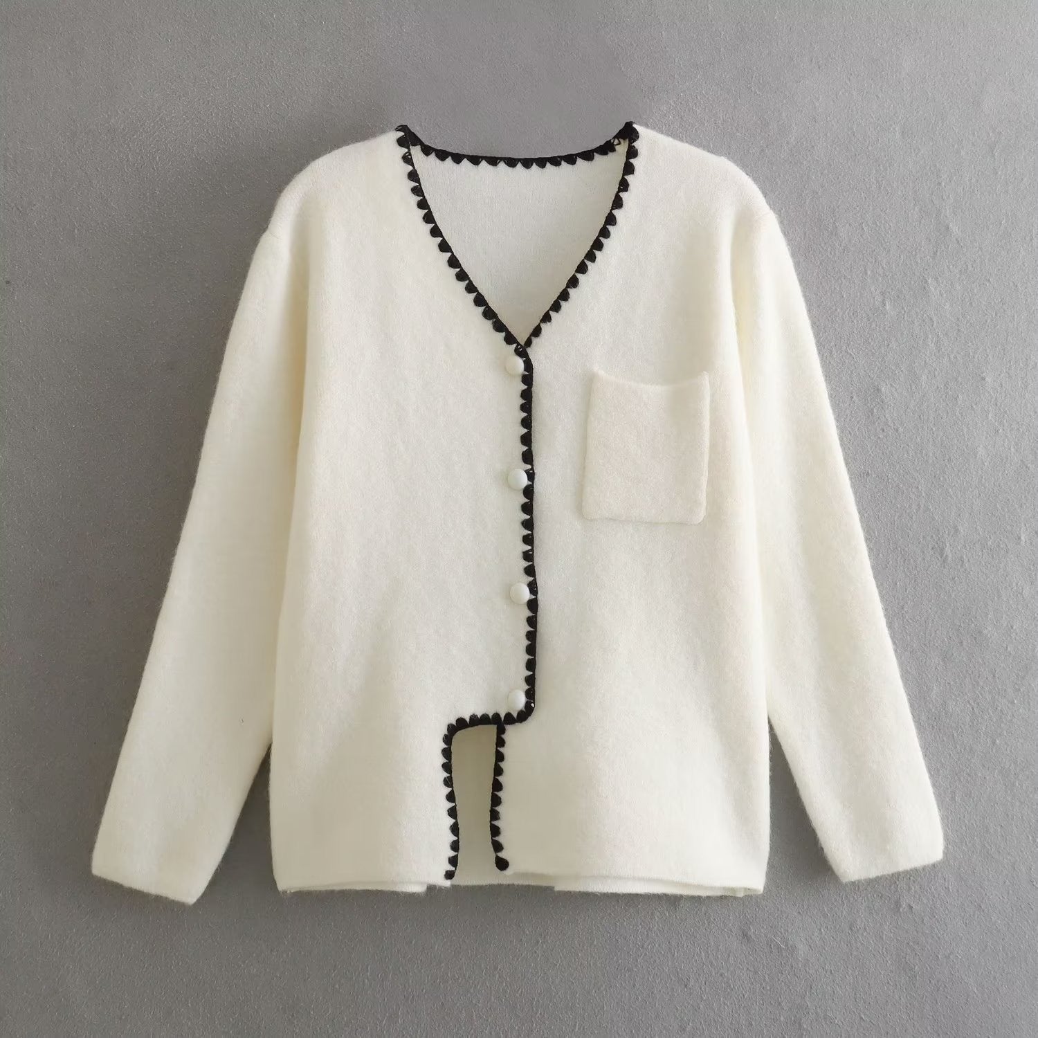Stitched Edge Accent Knit Sweater