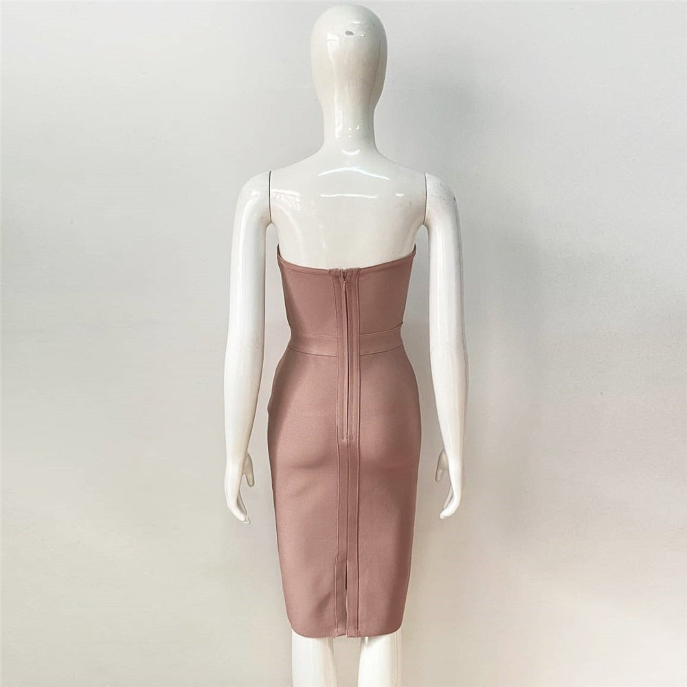 Made with a sleek and flattering design. this dress hugs your curves and accentuates your figure. The strapless neckline and fringe detailing add a touch of elegance. perfect for any occasion.