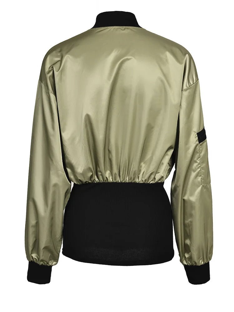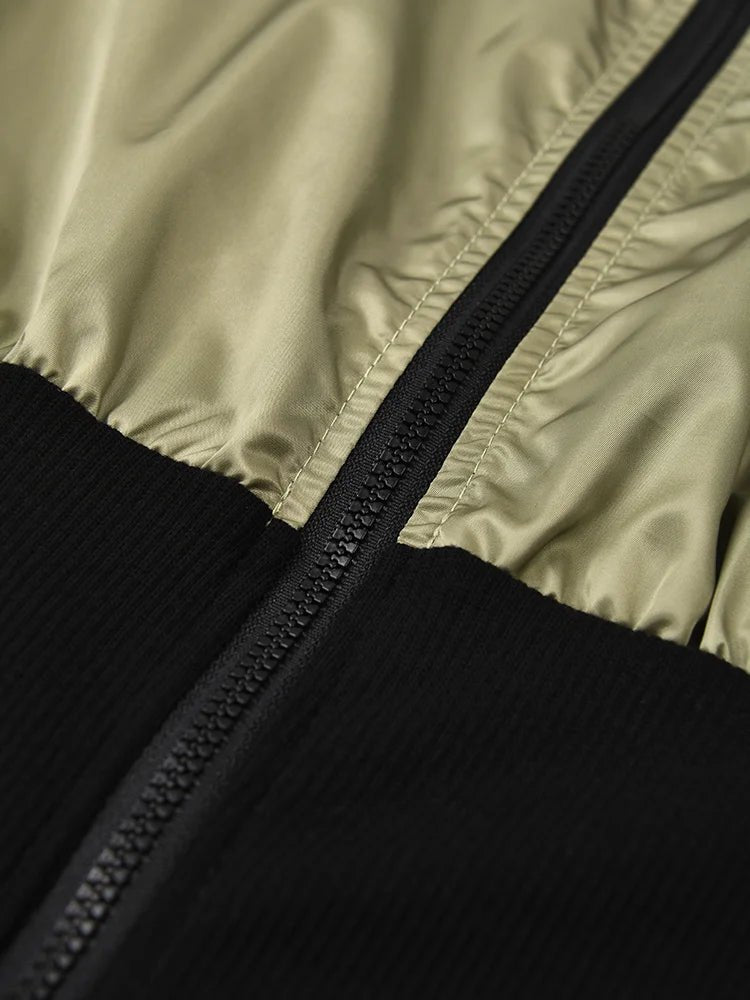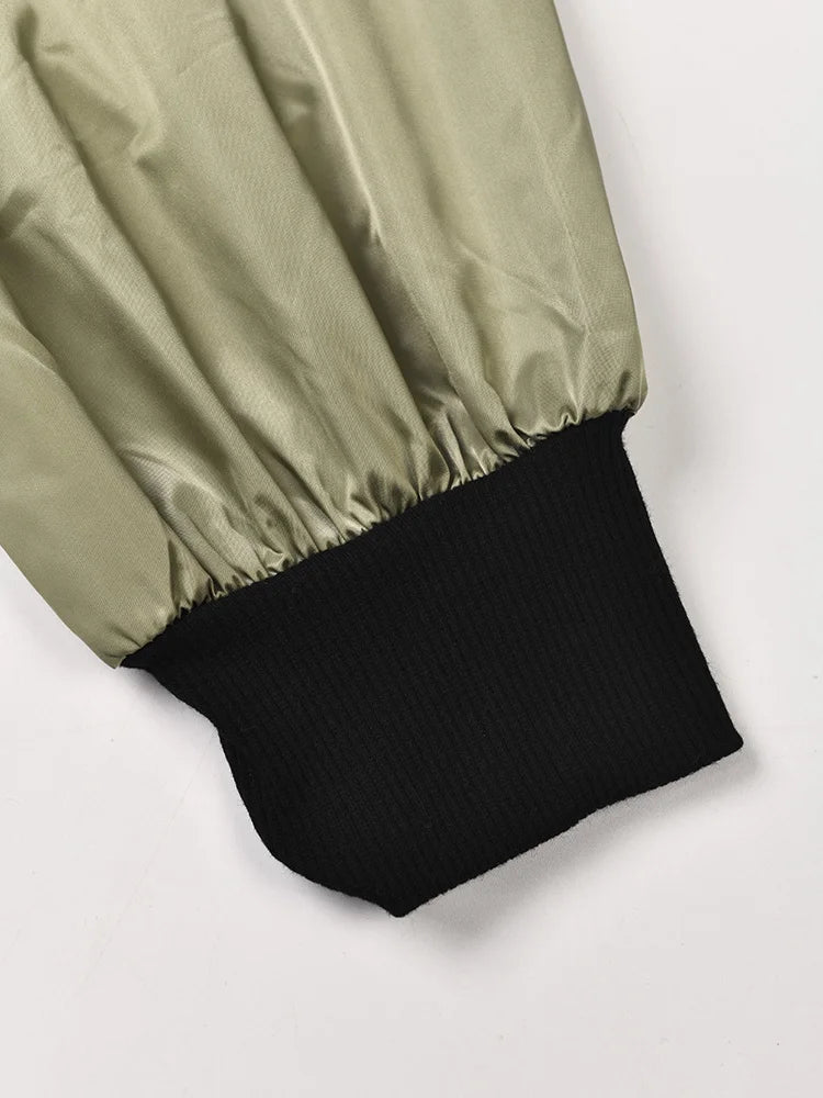 Green Color-block Jacket Loose Fit Big Size New Stand Collar Long Sleeve Women Coat Fashion Tide Spring Autumn