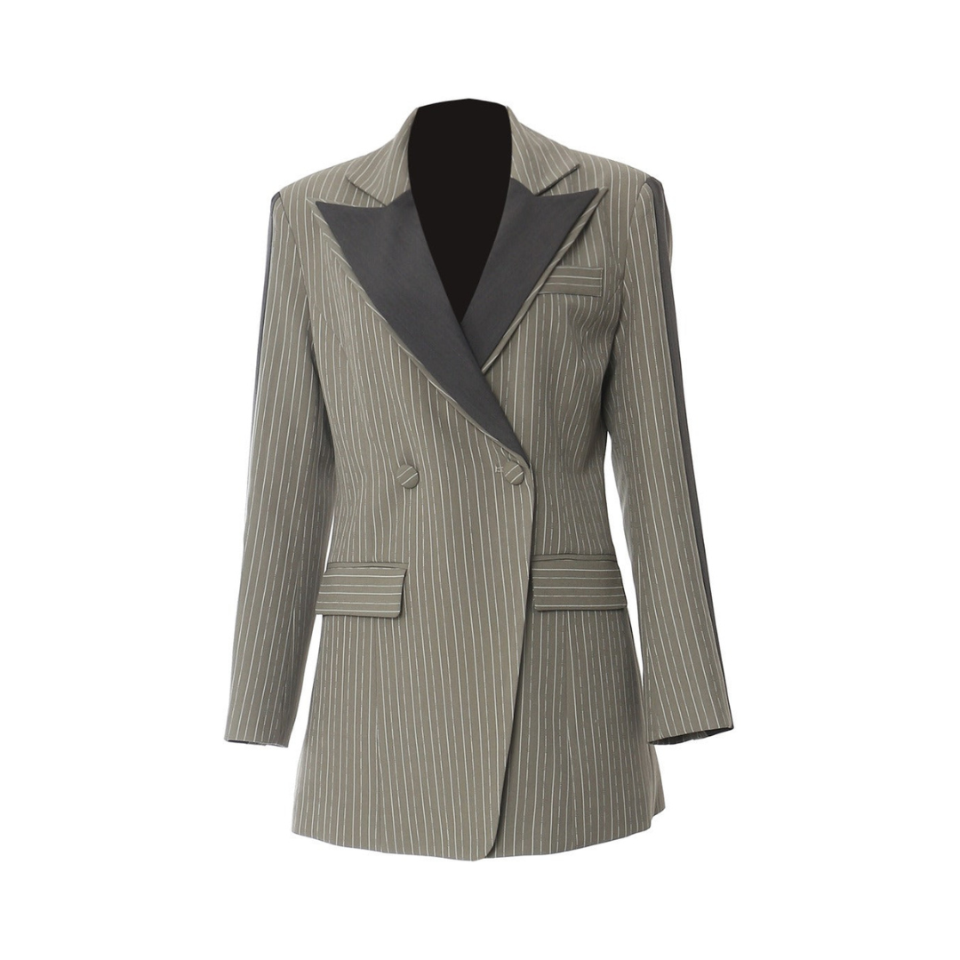 Introducing the Stripe Waist Cinching Blazer. This expertly designed blazer features a unique stripe pattern that cinches at the waist. providing a stylish and flattering fit. Perfect for any occasion. this blazer is a must-have for any fashion-forward individual.