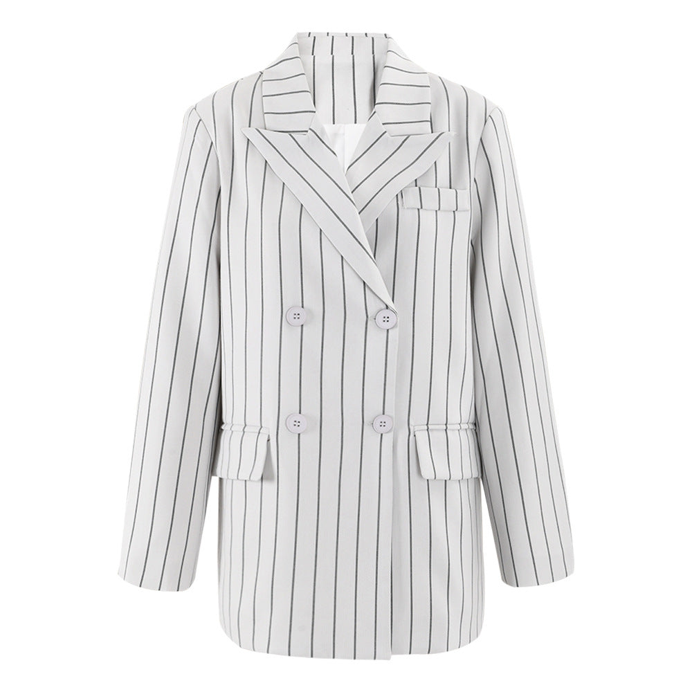The Striped Double Breasted Blazer is a versatile and timeless piece that adds sophistication to any outfit. Its classic design features a double-breasted front and bold stripes for a professional. polished look.