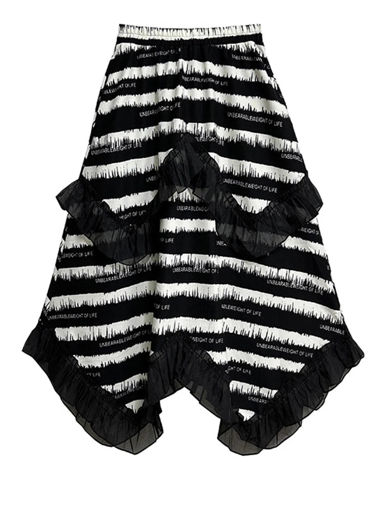 This striped knitted ruffle multilayered midi skirt combines style and comfort for a sophisticated look. The unique design features a flattering striped pattern and delicate ruffled layers. perfect for any occasion. Made with high-quality materials. this skirt offers both fashion and functionality.
