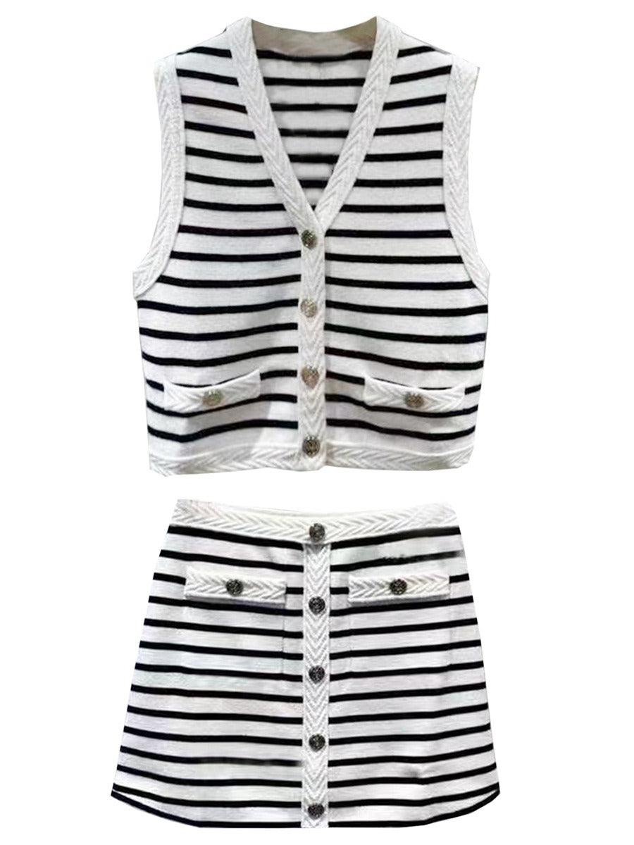 The vest features a flattering v-neck design and the skirt is designed with an A-line silhouette for easy movement. Made with a soft knit material. this set offers both comfort and style for any occasion.