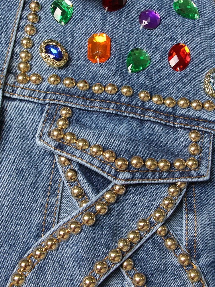 Studded Hollow Out Patchwork Jacket