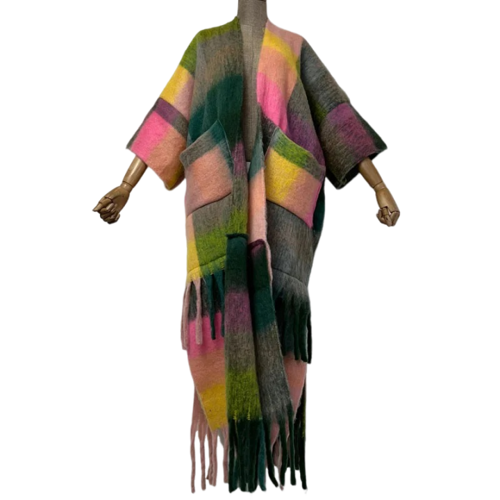 Experience ultimate comfort and style with our Stylish Plaid Poncho Cardigan. Made with soft and luxurious fabric. this cardigan features a trendy plaid design that will elevate your wardrobe. Perfect for any occasion. this versatile piece will keep you cozy and chic all day long.