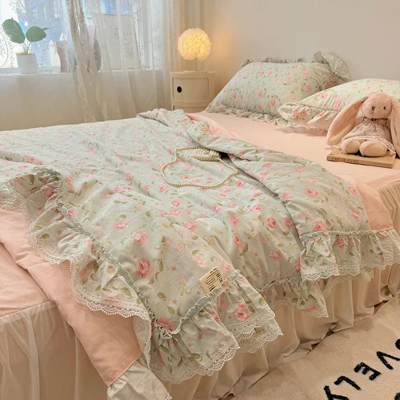 Summer Quilt New Cotton Korean Ins Lace Fragmented Series Air Condition Quilt High Quality Summer Blanket set