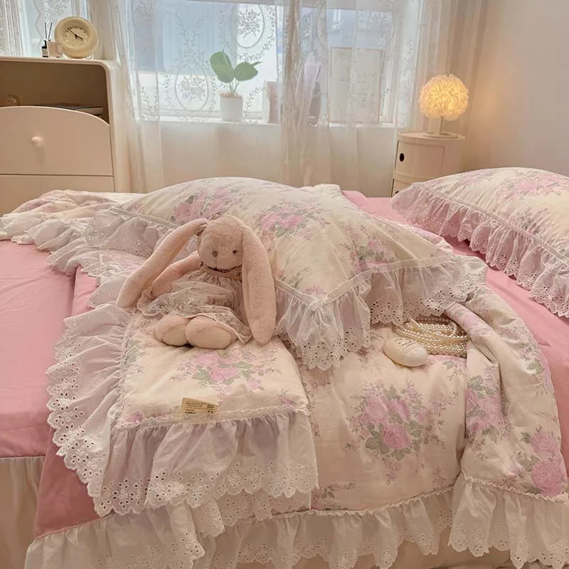Summer Quilt 2025 New Washed Cotton Korean Ins Lace Fragmented Series Air Condition Quilt High Quality Summer Blanket set