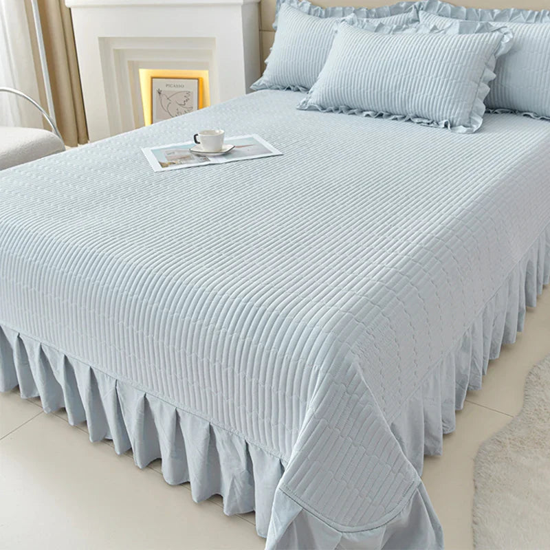 Summer solid color tencel bed cover three-piece set lace ice silk mat air conditioner mat non-slip bed sheet kang cover soft mat