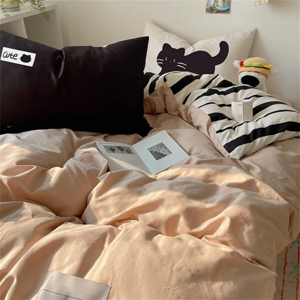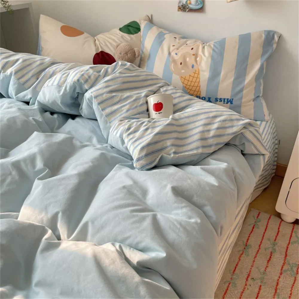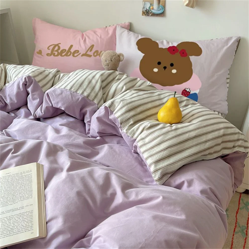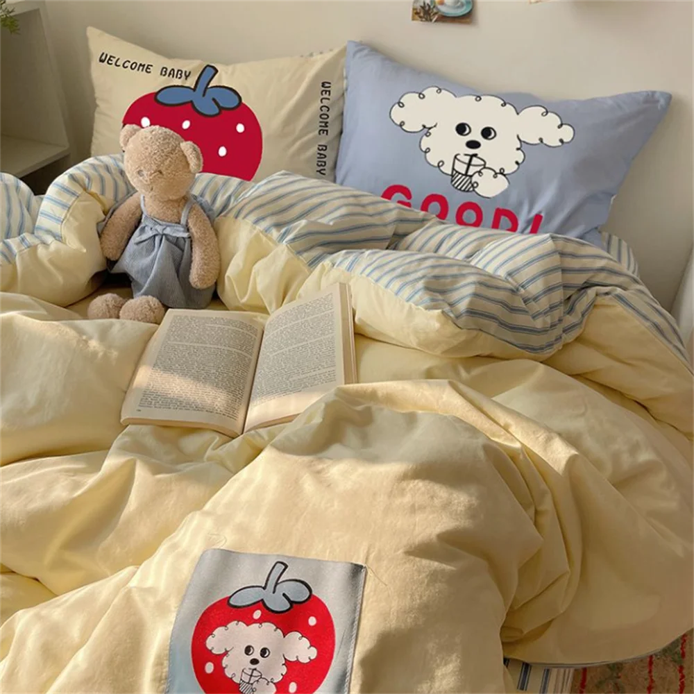 Super Soft Cloud Wash Cotton Four-Piece Set of Student Dormitory Three-Piece Set of Bed Bamboo Cartoon Bedding Set