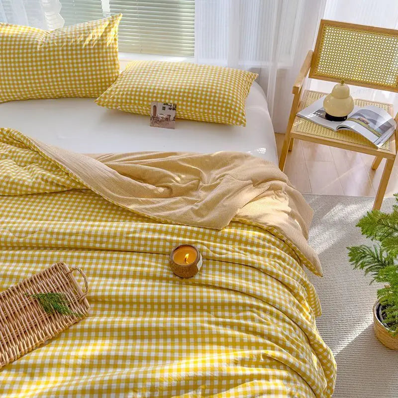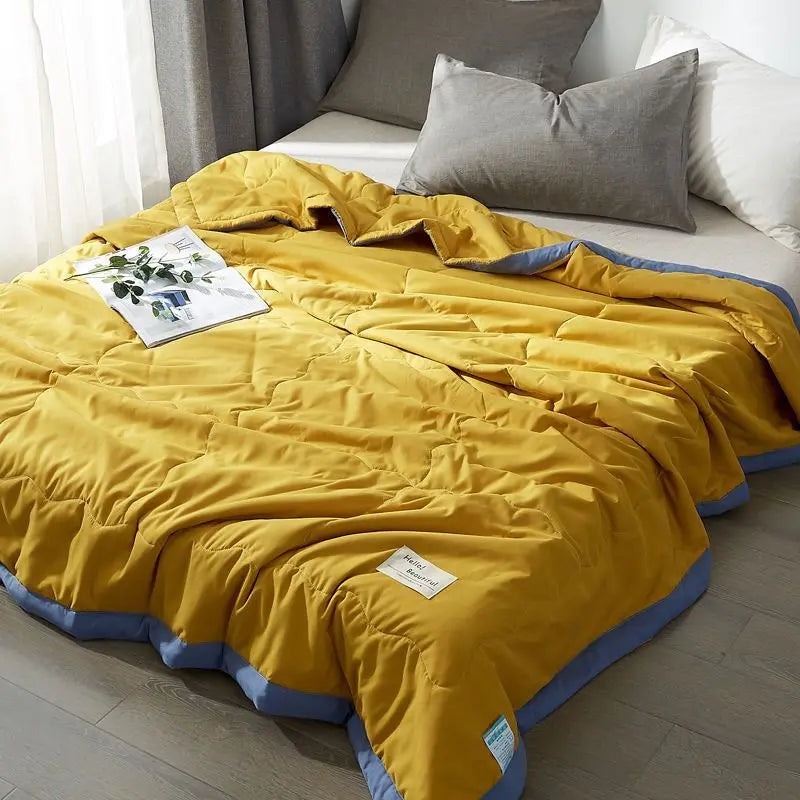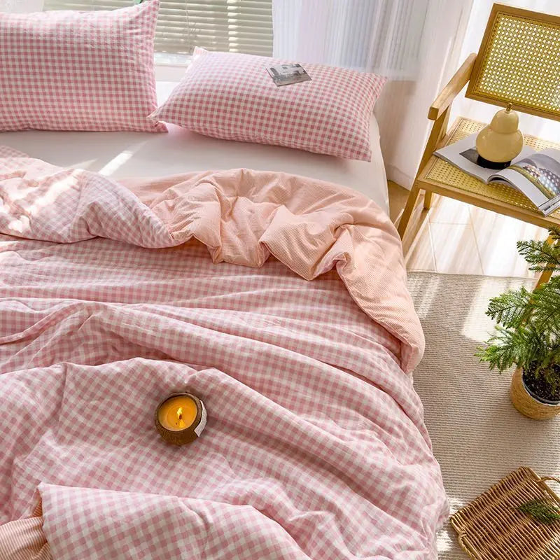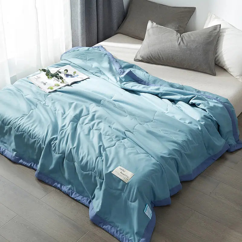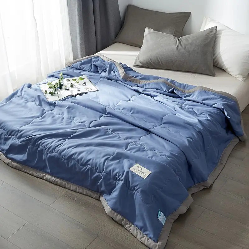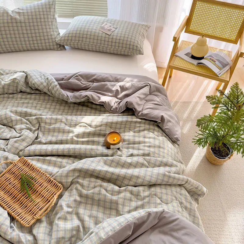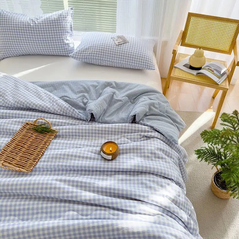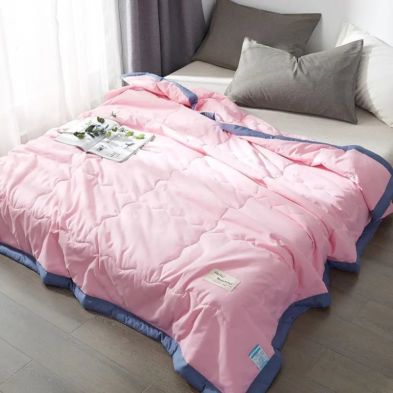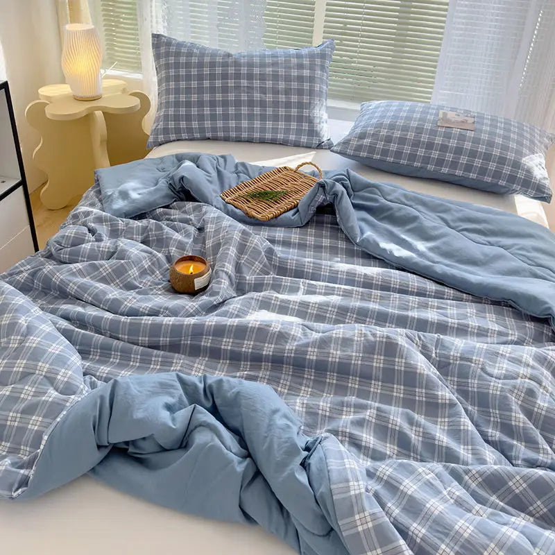 Thin Summer Quilt New Japanese Style Blue Pink Plaid Twin Queen Size Blanket Soft Kids Adult Ins Washable Cool Quilt