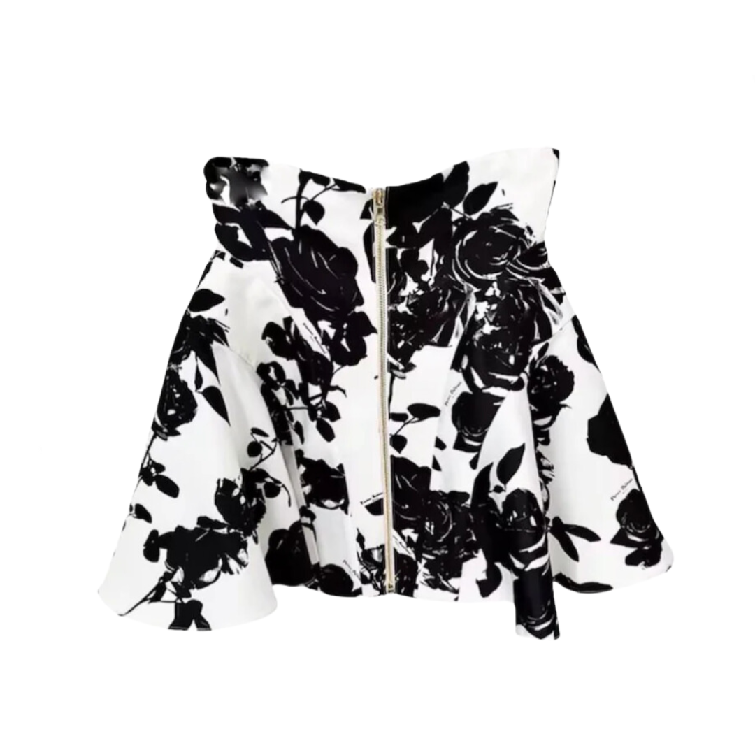 This Tulip Waistline Rose Metal Button Floral Mini Skirt features a unique tulip waistline design and a beautiful metal button with a rose design. With this skirt. you can add a touch of elegance and femininity to any outfit.