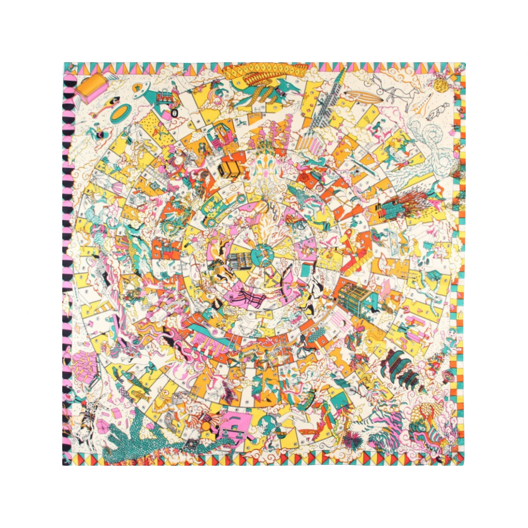 Made with twill silk. the scarf features a unique playground print that adds a playful touch to your outfit. Elevate your style and protect yourself from the elements with this versatile and stylish accessory.