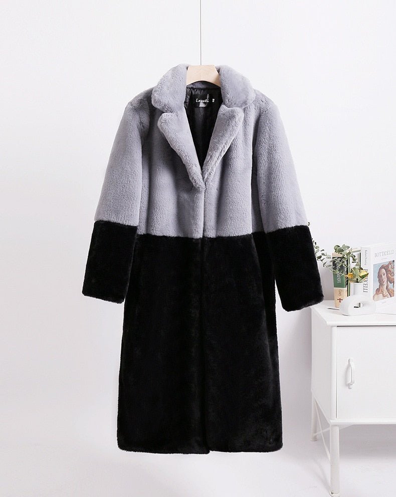 Two-Tone Faux Fur Loose Coat - @theestylishp
