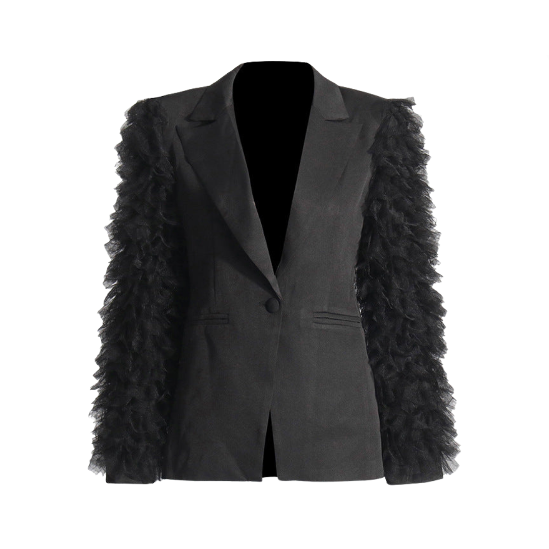 This professional V-Neck Ruffled Long Sleeved Suit Jacket is designed to elevate your work wardrobe. With its unique ruffled detail and elegant V-neck cut. it adds a touch of sophistication to any ensemble.
