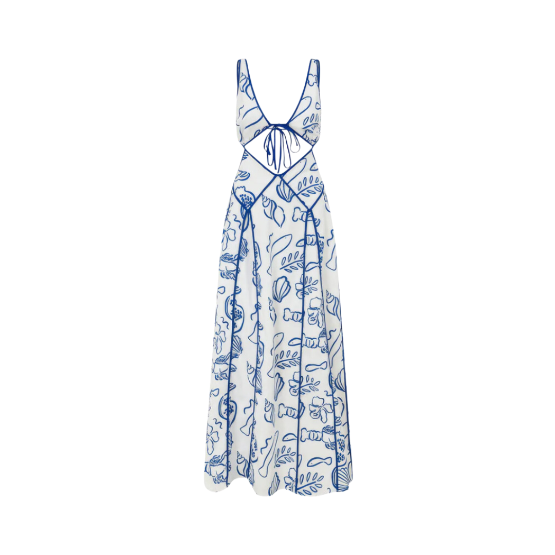 This vintage dress features a unique hollowed out print. adding a touch of retro style to your wardrobe. The intricately designed print is both elegant and eye-catching. perfect for any occasion.