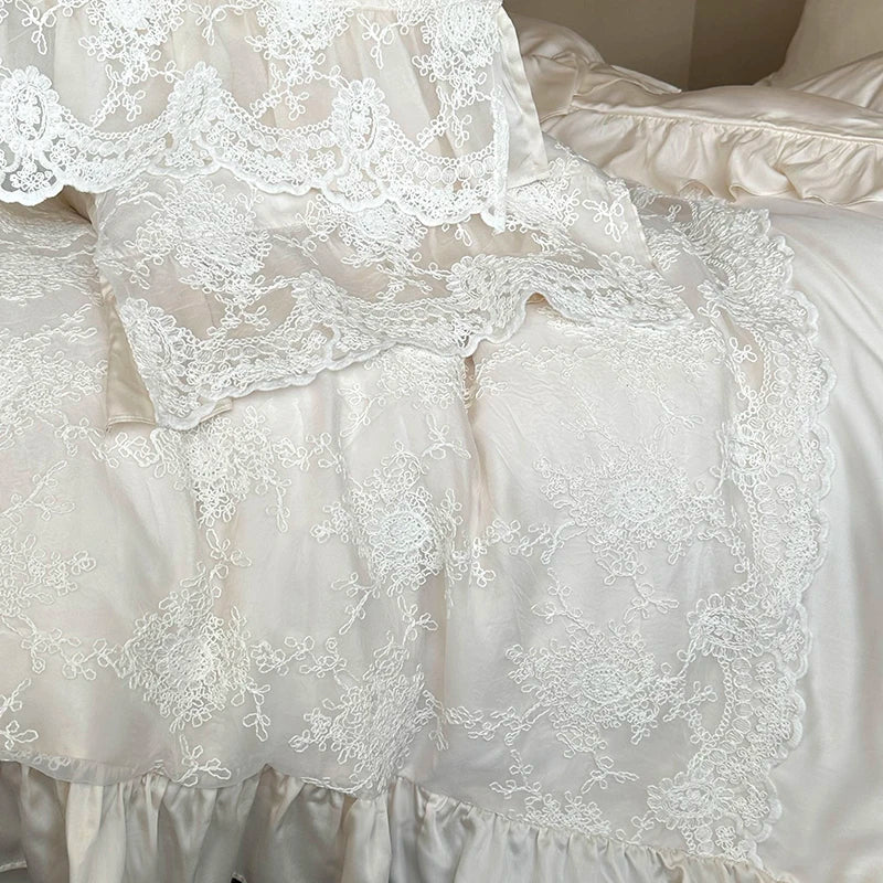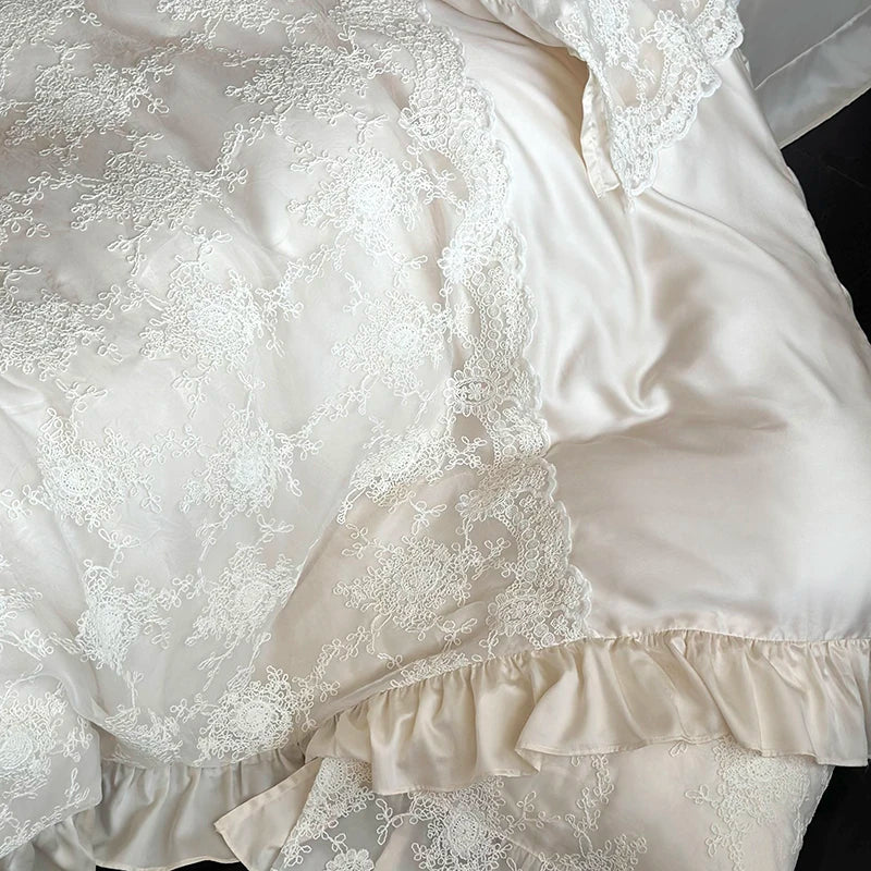 Vintage Lace Splicing Princess Wedding Bedding Set 1000TC Egyptian Cotton Duvet Cover Bed Sheet/Fitted Sheet Pillowcases 4Pcs