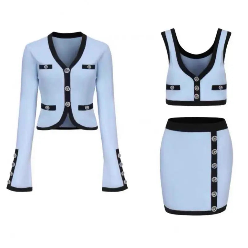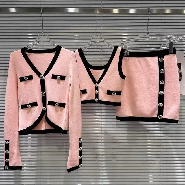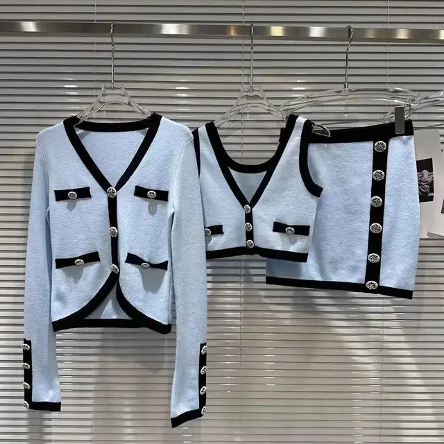 - Style: Knitted Cardigan + Vest + Skirt