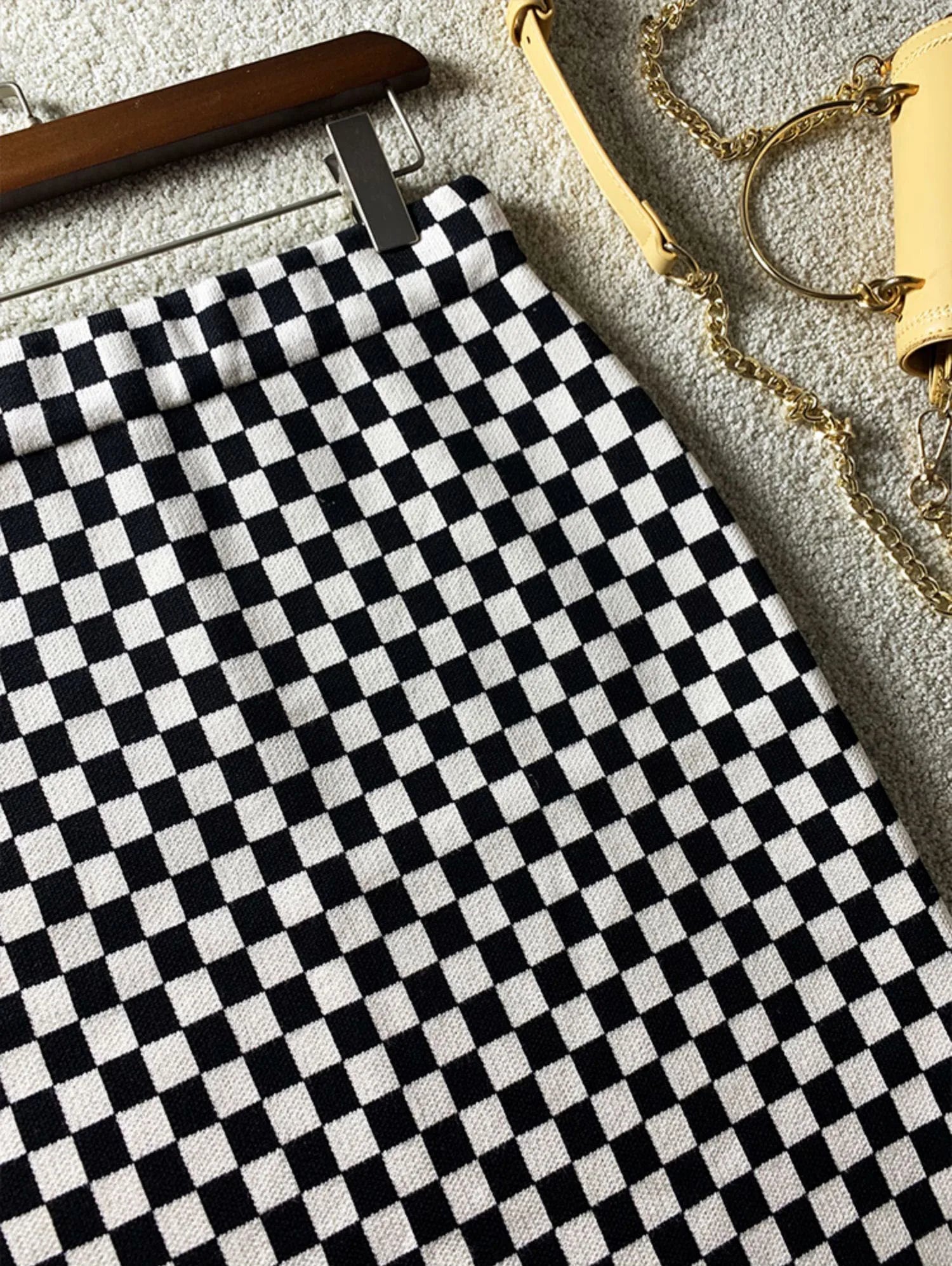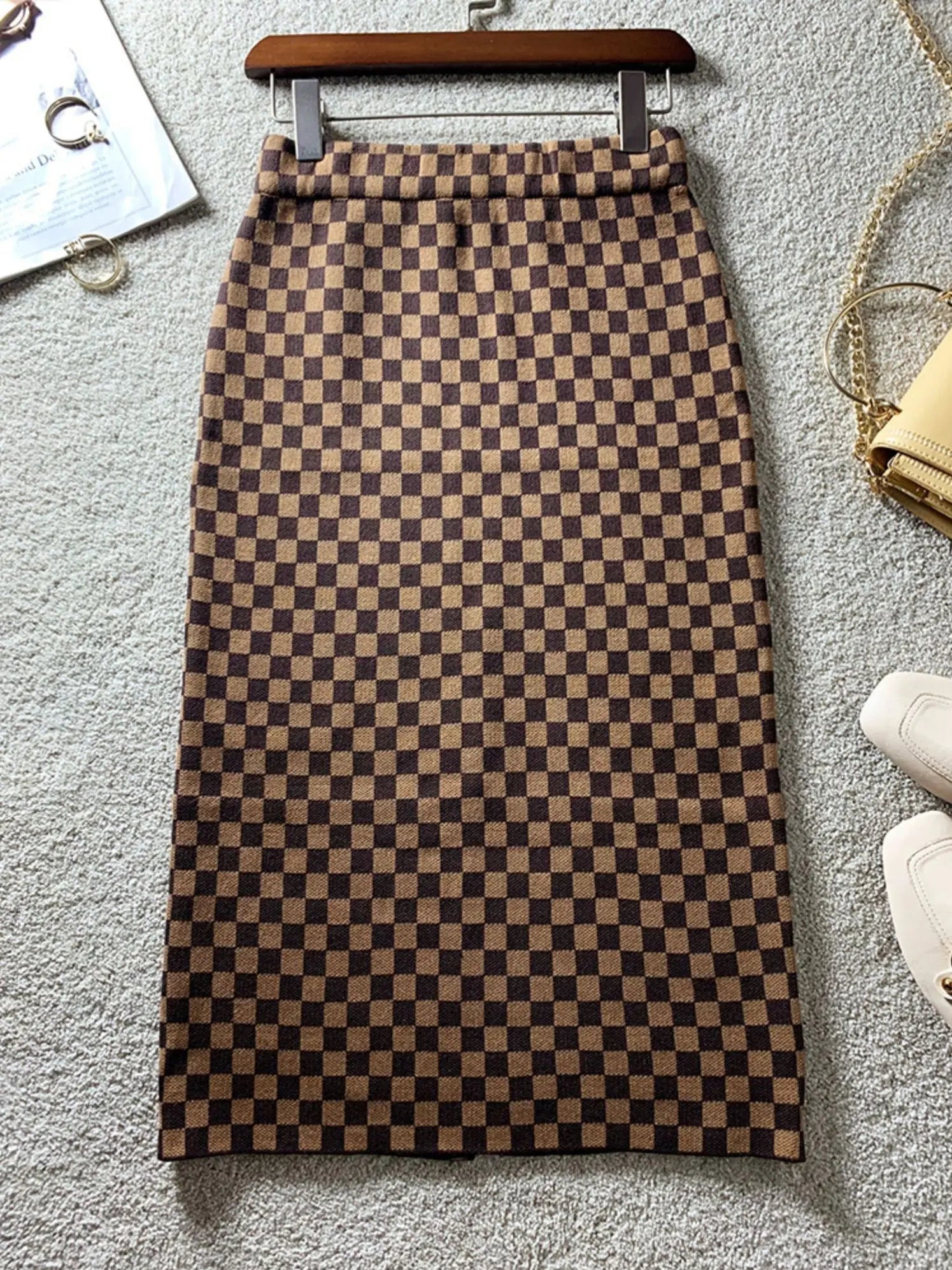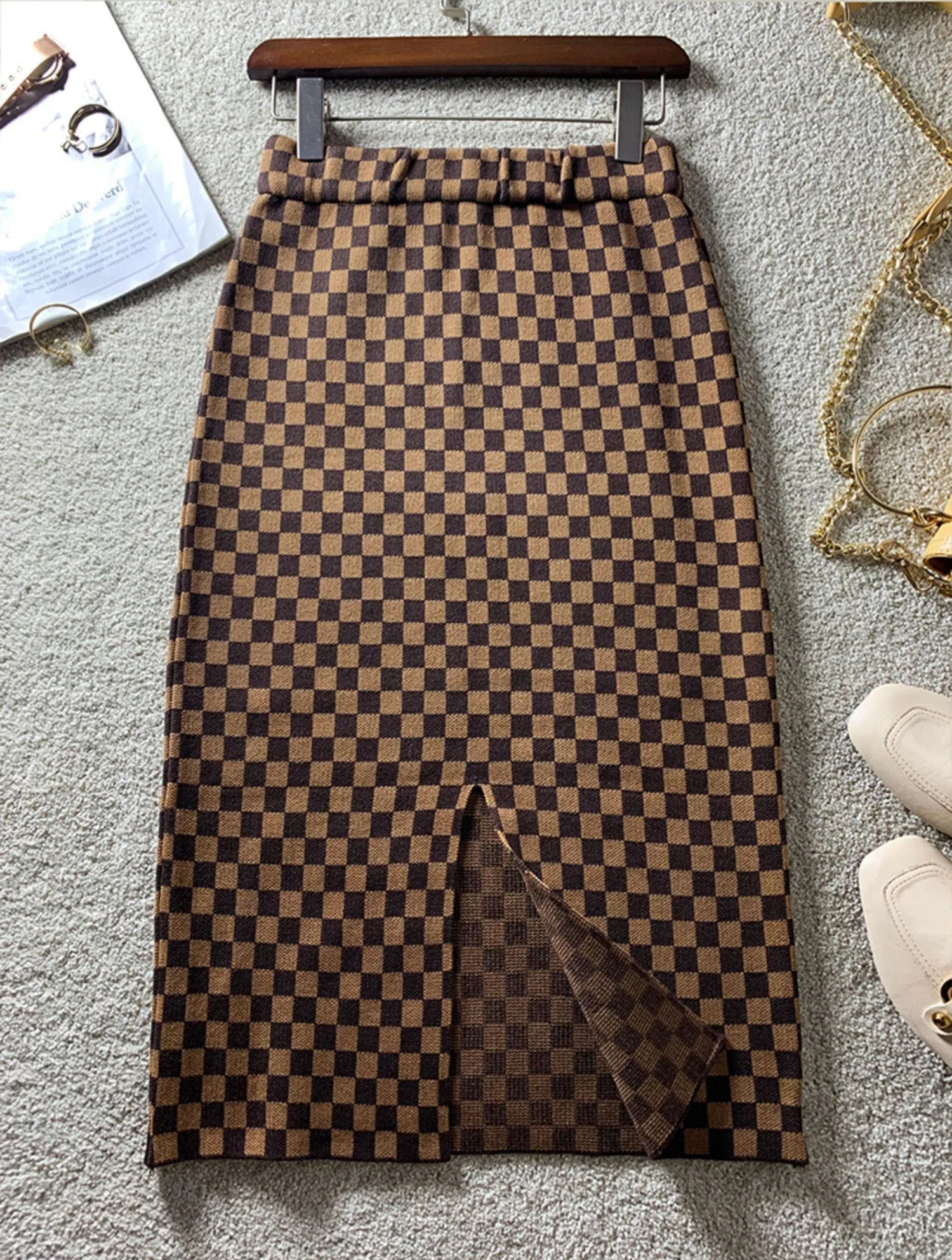 Experience timeless style with our Vintage Plaid Checkered Printed High-Waisted Midi Skirt. Made with a flattering A-line silhouette and high waist design. this skirt hugs your curves and accentuates your figure.