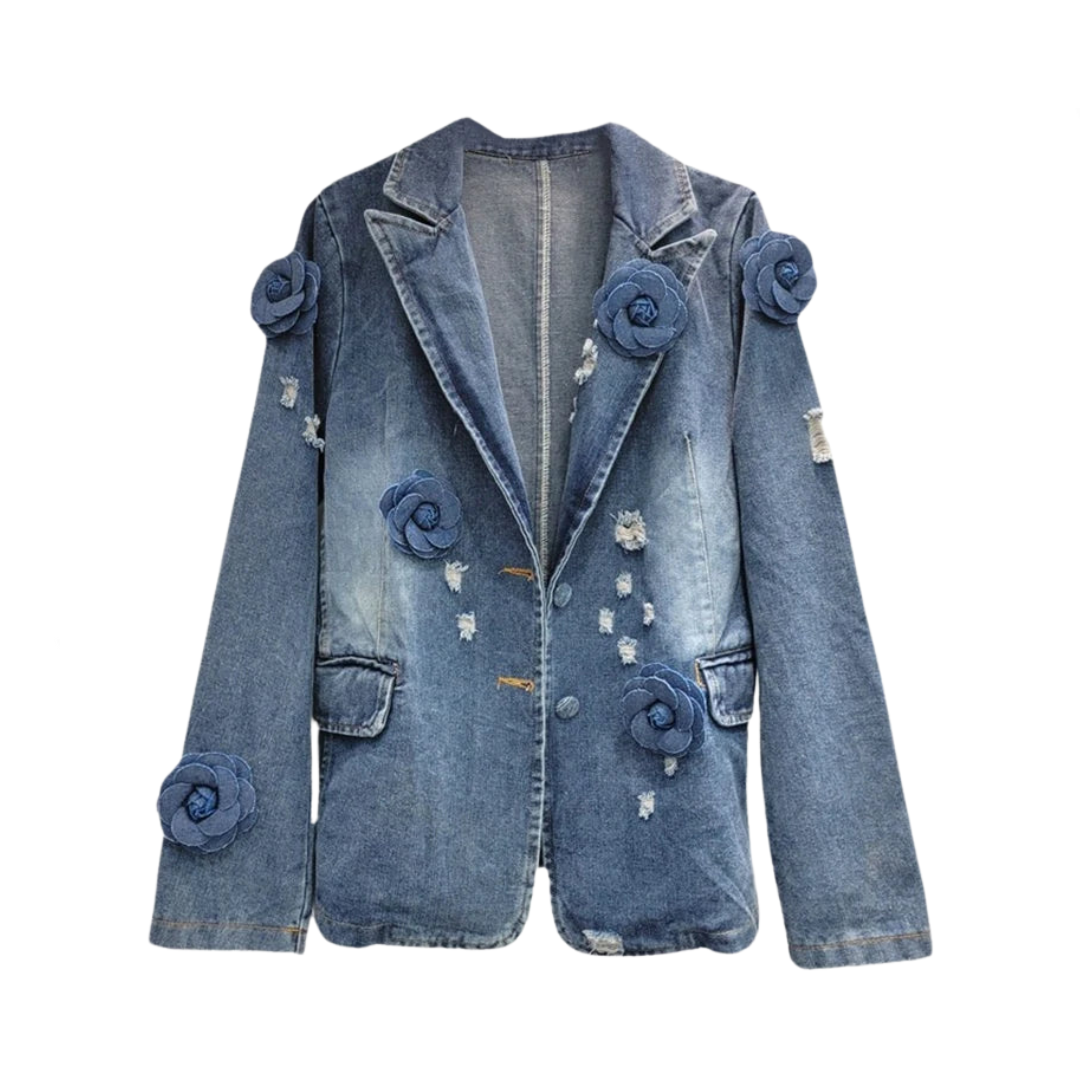 This Vintage Spliced Flower Loose Denim Jacket offers a unique blend of vintage and modern style. The loose fit and spliced flower design add a touch of femininity to the classic denim jacket.