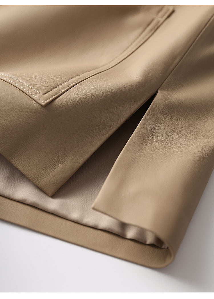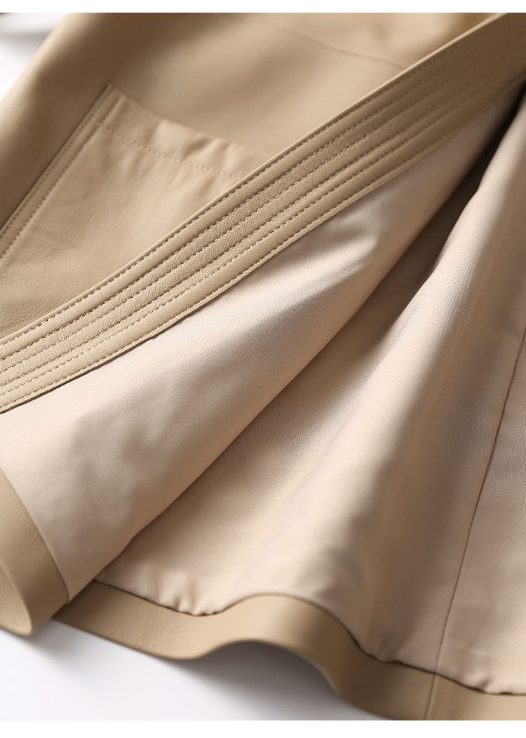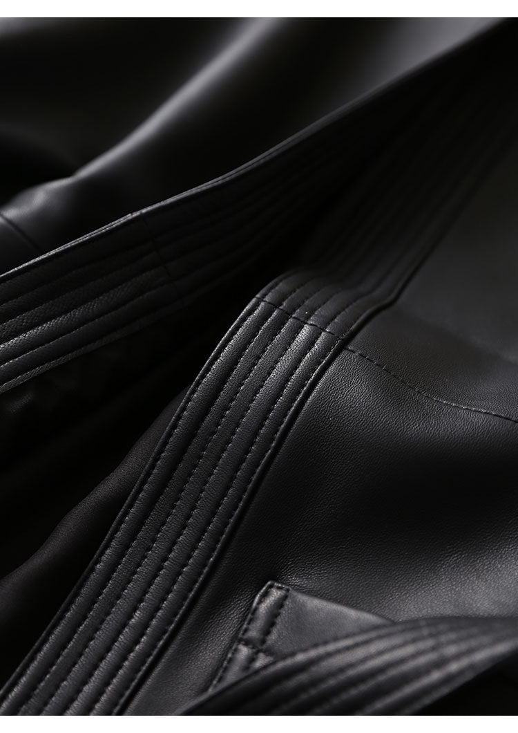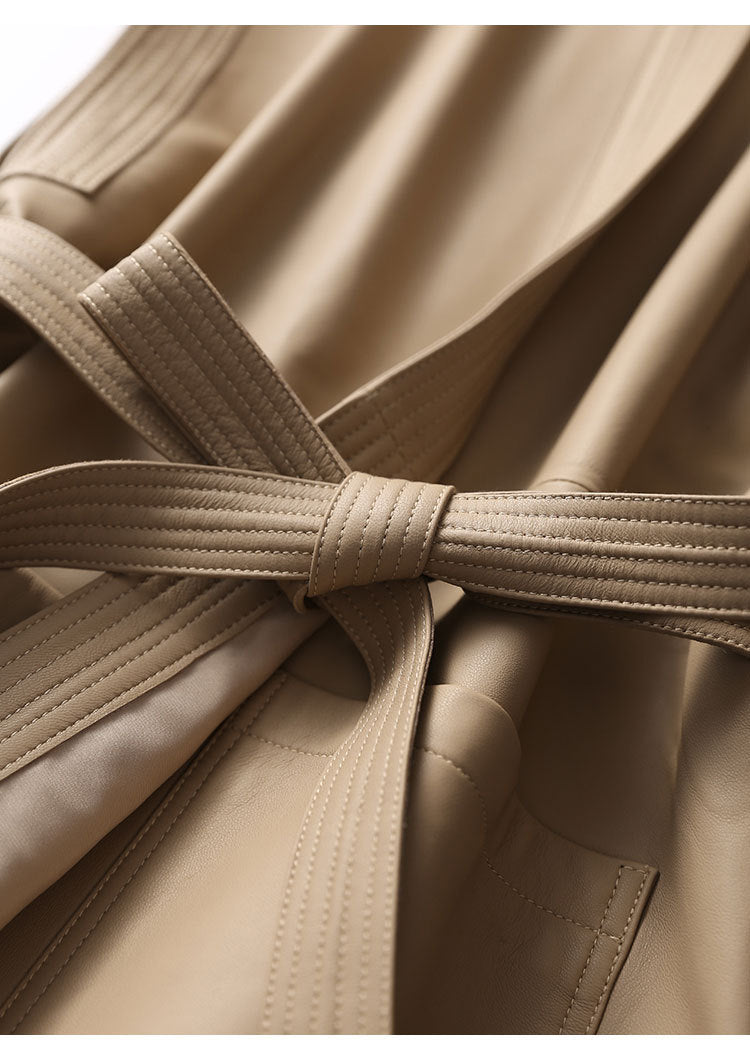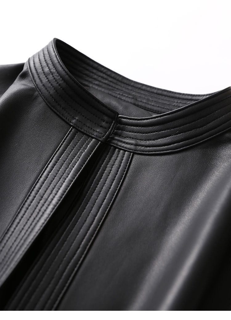 This Waist Cinched Leather Sleeveless Coat expertly combines fashion and function. Made with vegan leather. it features a waist cinching detail to accentuate your figure.