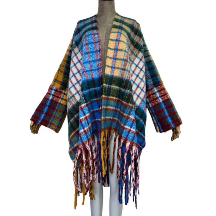 Stay stylish and cozy in our Warm Plaid Poncho Cardigan. Made with high-quality materials. this cardigan offers a comfortable fit and versatile style. With its warm and chic design. it's the perfect addition to any outfit. Upgrade your wardrobe with this must-have piece.