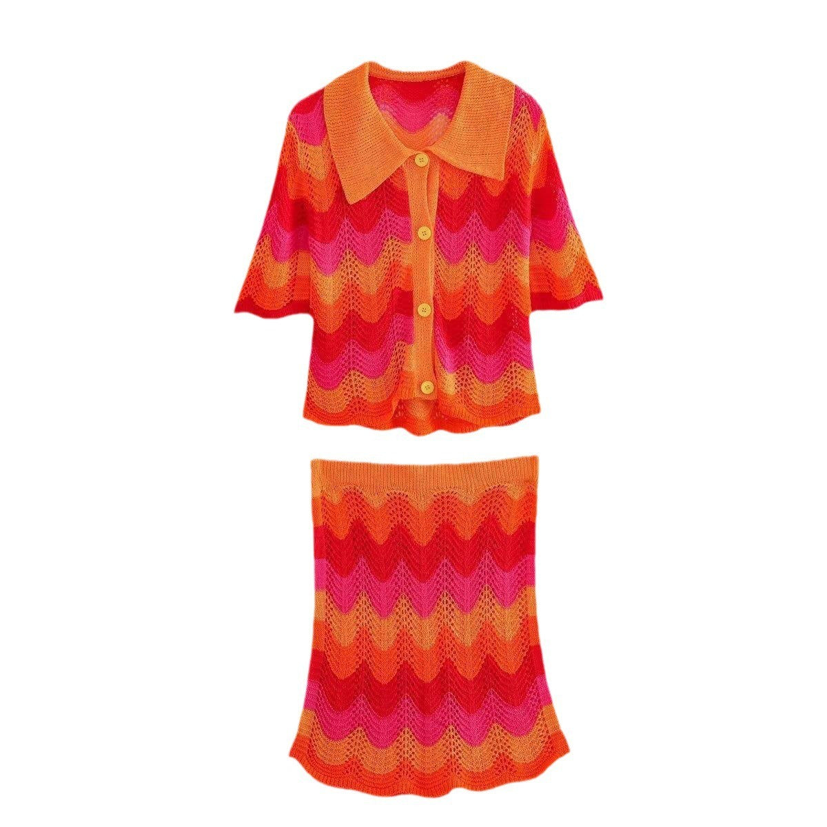 Made with knit fabric. these pieces provide both comfort and style. The wavy striped pattern adds a touch of texture and dimension to your outfit. making it perfect for any occasion.