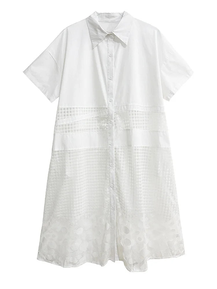 Expertly crafted with delicate lace. this white midi shirt dress exudes sophistication and elegance. Its big size accommodates all body types. making it a versatile and flattering choice for any occasion.