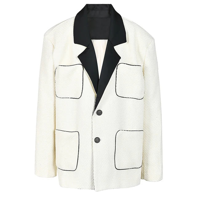 Expertly crafted for the colder months. this white single-breasted coat features a v-neck and long sleeves for warmth and style. With a loose fit and large pockets. this jacket is both fashionable and functional.
