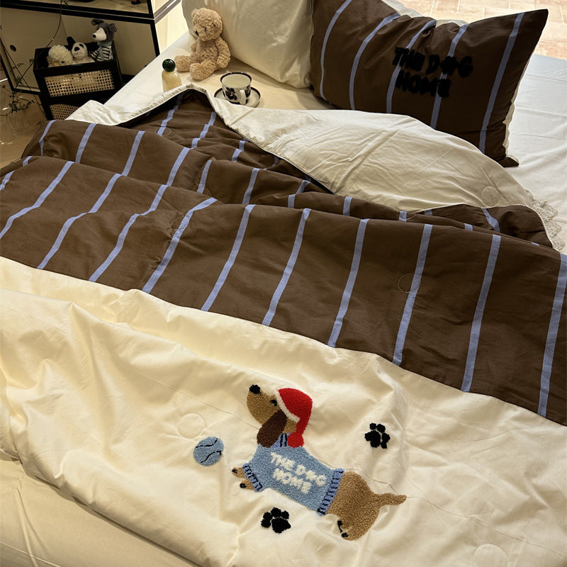 Cotton Summer Cool Quilt Washable Pure Cotton Air Conditioning Quilt Four-Piece Set Single Double Quilt 2 M Bedding set