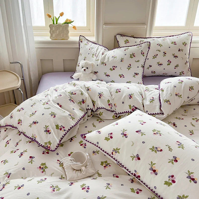 Yeknu Cute Purple Grapes Fruit Duvet Cover Girls INS Bedding Set for Kids Queen Full Size Flat Bed Sheet Quilt Cover Pillowcase Kawaii