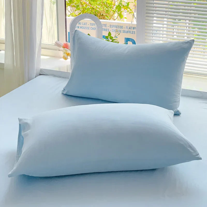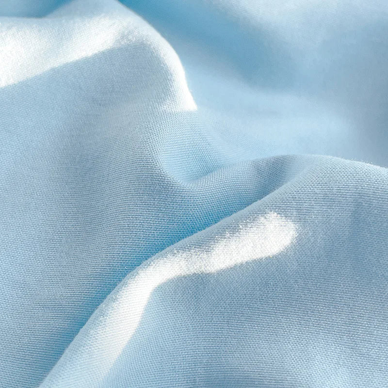 Yeknu Girls Blue Duvet Cover Set Twin Full Queen Size Soft Flat Sheet Pillowcase Bed Linen Princess Style Solid Color INS Bedding
