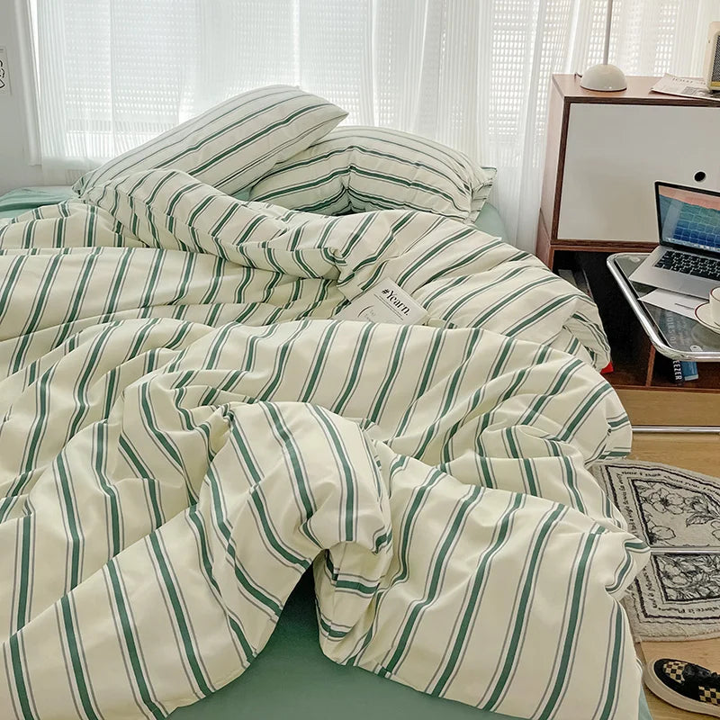 Yeknu Green Stripe Series Printed Soft Bedding Set Duvet Cover Bedclothes Bedspread Pillowcases Flat Sheets Comforter Sets for Girls