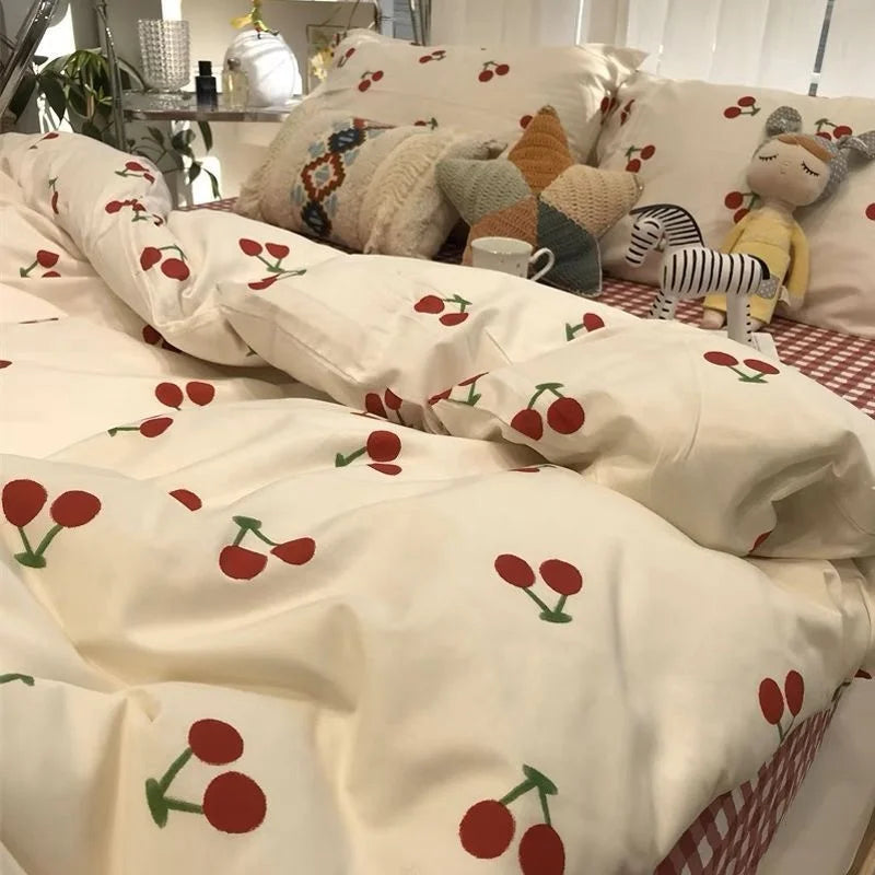 Yeknu Ins Pink Flowers Bedding Set Flat Bed Sheet Duvet Cover Twin Full Queen Nordic Bed Linen Boy Girl Bedding Sets Flower Cherry