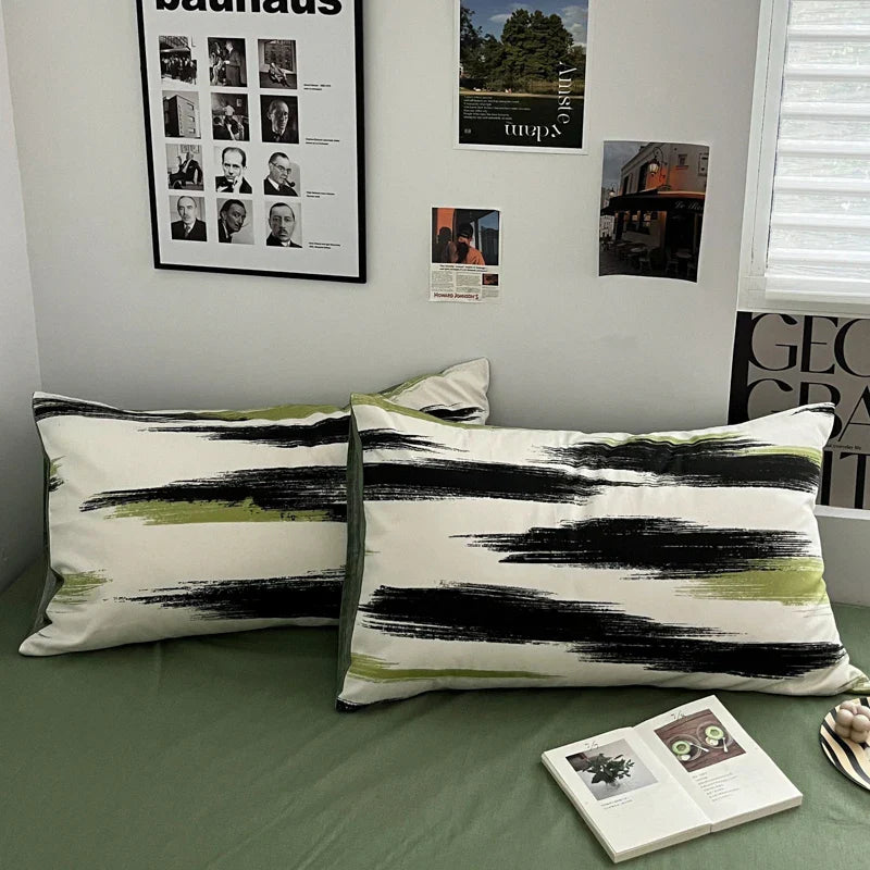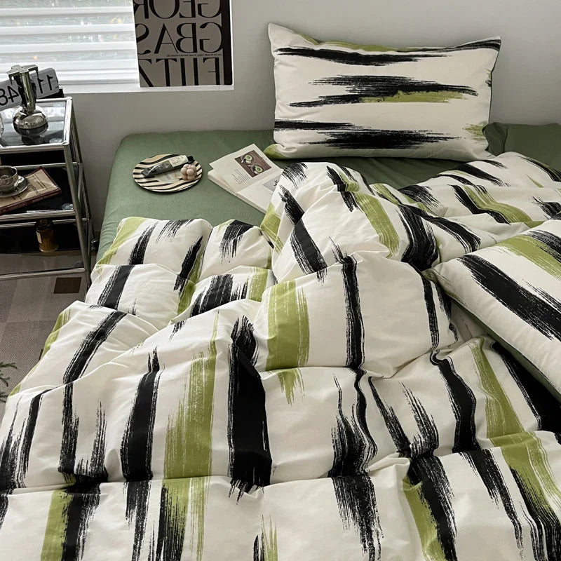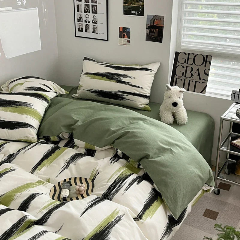 Yeknu Ins Stripe Bedding Set Green Black Duvet Cover with Pillowcase Simple Quilt Cover Adults Single Double Full Size