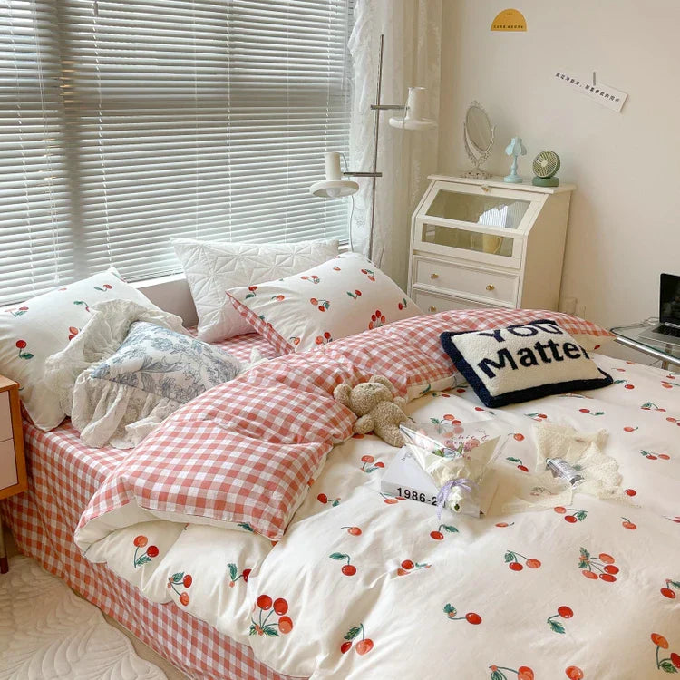 Yeknu Ins Style Bedding Set No Filler Purple Tulip Fashion Duvet Cover Flat Sheet Pillowcase Girls Boys Single Double Size Bed Linen