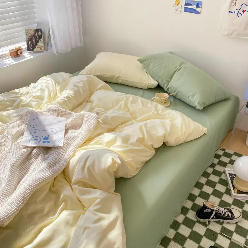 Yeknu Korean Solid Color Bedding Set Adults Kids Twin Full Queen Size Soft Bed Flat Sheet Duvet Cover Set Pillowcases Simple Bed Linen