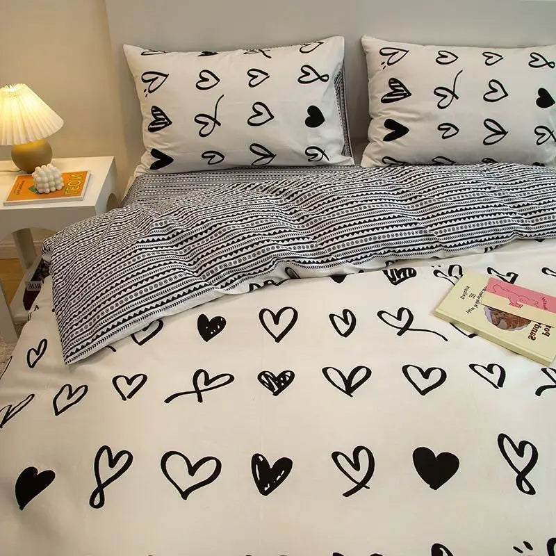 Yeknu New Fashion Bedding Set Ins Floral Single Double Size Duvet Cover Flat Sheet Pillowcase Grid Solid Color Home Girls Bed Linens