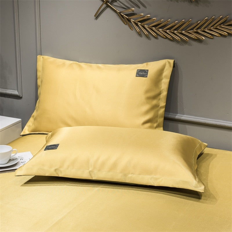 Newest Products Pure Color Embroidered ice Silk Mat Bed Cover fitted sheet Pillowcases 3 pcs Luxury Bedding Yellow Color