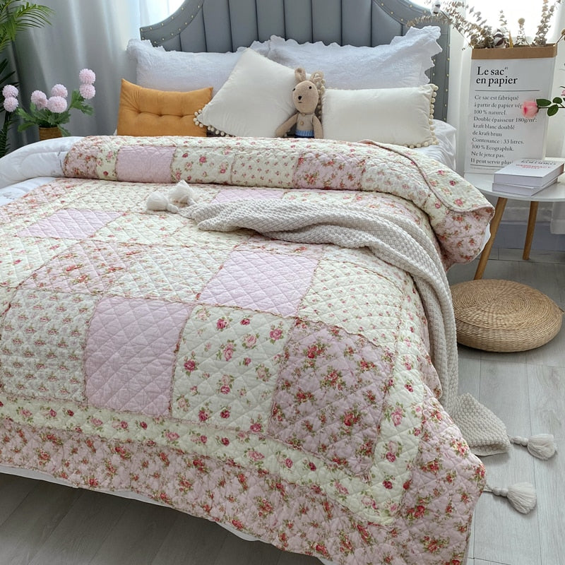 Floral Patchwork Bedspread Coverlet 1PC Cotton Quilt Soft Cotton bedding Summer Sofa Blanket