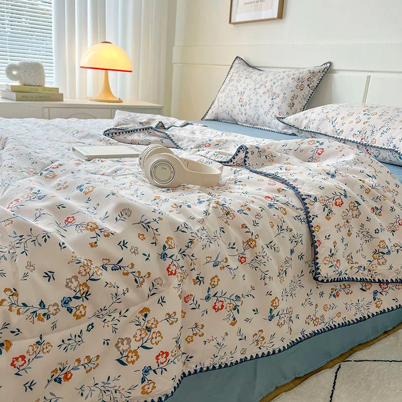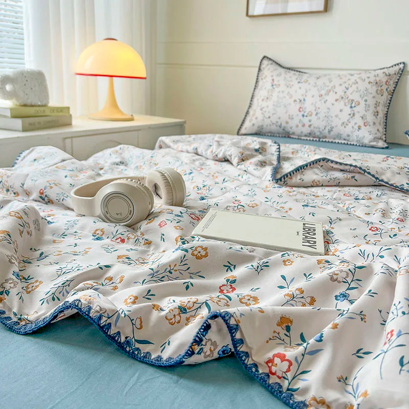 Yeknu Summer Quilt French Style Comforter Quilt Flora Household Machine Washable Suitable Cool and Refreshing이불 Blanket