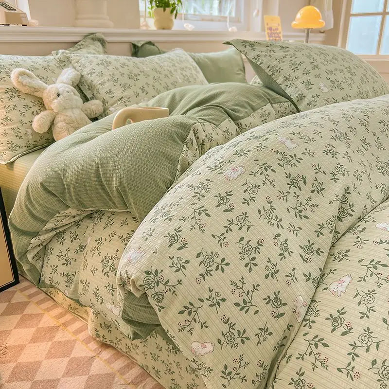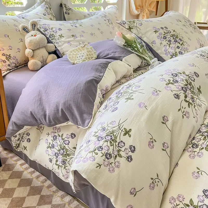 Yellow Floral Bedding Set Soft Ins Single Double Queen Size Duvet Cover Flat Sheet Pillowcase Girls Home Bed Linens NO Filler